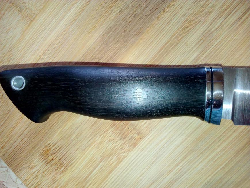 Сталь кованная не ржавеет, долго держит заточку 95х18 ТО Михаила Батурина. Длинна клинка 130 мм, ширина 28 мм, толщина 4 мм. Больстер латунь битый камень. Рукоять натуральное дерево Ясень, пропитка датское масло . Монтаж всадной на эпоксидку. Бритвенная заточка. Покрытие клинка ручной сатин . Твердость по Роквеллу 59 ЕД.Ножны натуральная кожа , свободный подвес. Прямые спуски от обуха , сведение 0,2 мм. 3200 р.