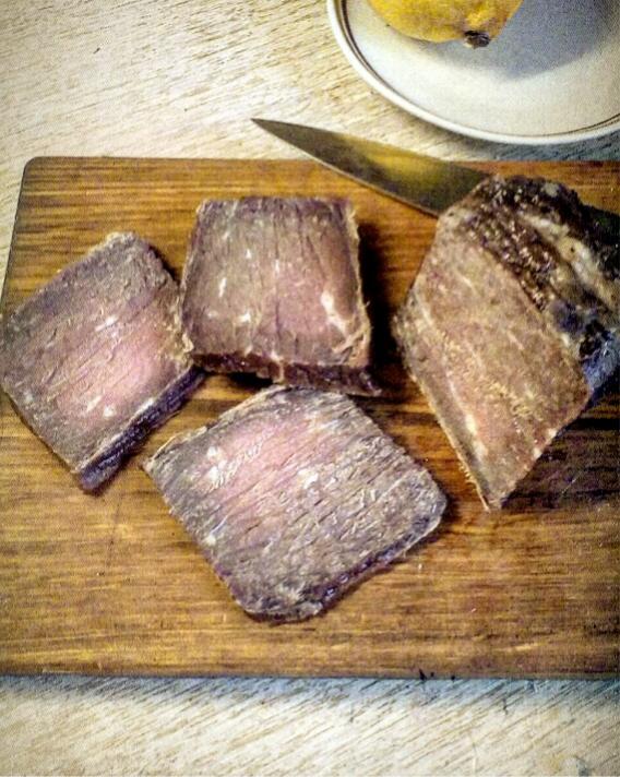 Понадобно: один килограмм говядины, по сто граммов сахару и соли, три столовы ложки растительного масла, да водки - 150мл., я взял можжевелову, в Гаврилках продавают. Специи або перца молотого-рибентроппа - чайну ложку (можно больше). Всю этую субстанцию надобно тщательно вымешать. Мясо изнахратить кусками, с таким расчётом, чтоб субстанция всюду свой целебный настой могла проникнуть. У меня вышло пять кусков. 31 декабря, утром, я всё это исклал в контейнер, да и укатил с семьёю в гости до второго января. Третьего, аккурат утром-же, достал мясо, высушил полотенцем, да и положил на решётку в холодильник. А сам укатил на охоту. Тут добытый рецепт заканчивается, а начинается уже моё дополнение. Вчера, пятого, т.е. по прошествии шести дней, мне показалось, что мясо вышло сыроватое. Посему - сунул я тую решётку с мясом духовный шкаф, поставил газ на "самый малый вперёд", калитку оставил приоткрытой, а сам занялся домашними делами - бульон строгал, да варил оливье. Часа через четыре периодических переворотов мяса, решил, что - амба, карапузики, кончилися танцi, да и убрал мясо в холодильник. Сегодня попробовал. Отлично вышло! На мой взор - добавить-бы остроты, но и так вкусно. Главное - вкус мяса есть. В след раз добавлю шушуть чесноку. И да, получилось мягкое, невзирая на вид. И всем моё почтение ✌ |
