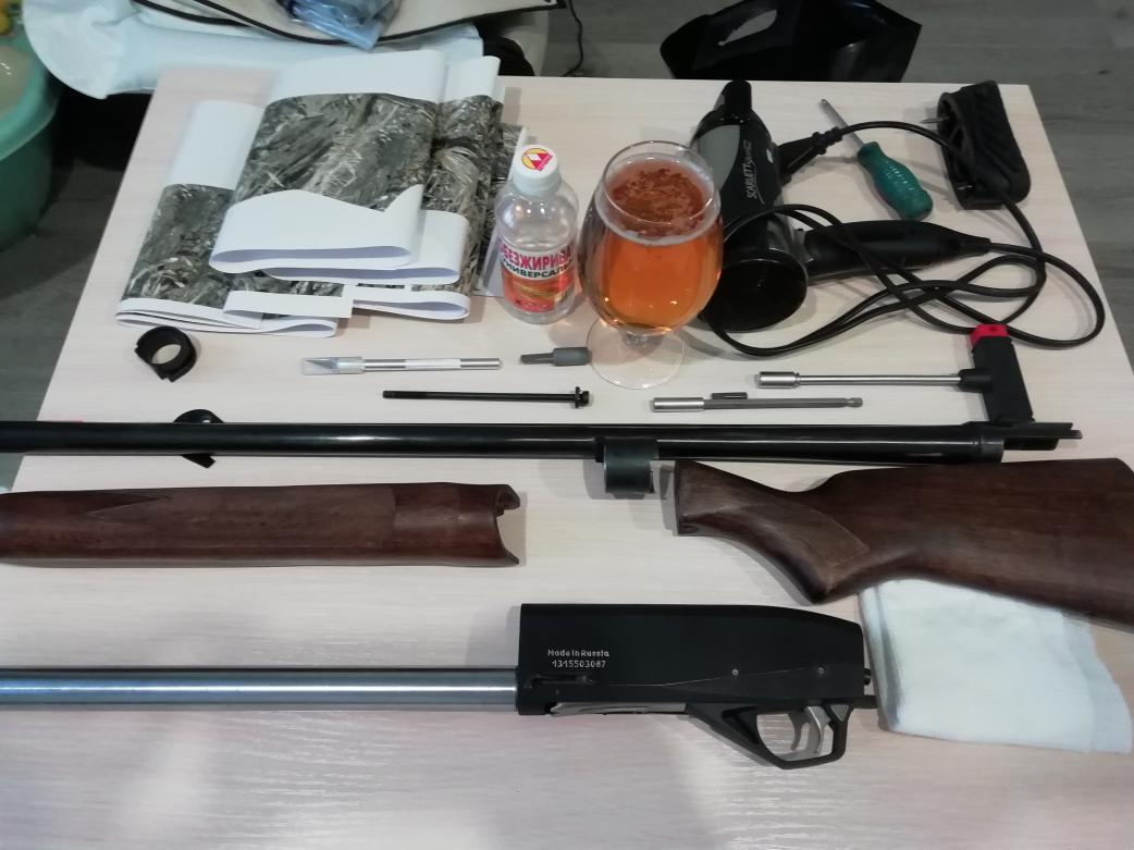Посветил я детектором на ружьё - стало фиолетовое, посветил на камуфляж - фиолетовый, посветил на патронтаж - опять фиолетовый.