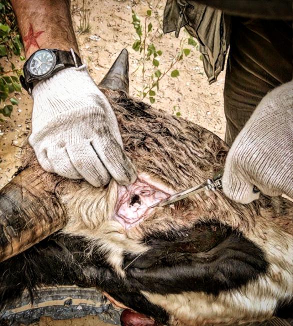 Череп пробит, пуля глубоко в башке, в раневом мелкие свинцовые крошки.