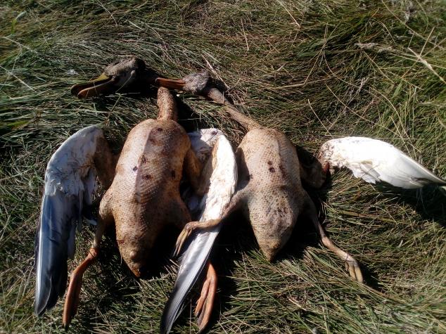 Вечерка пятницы и утро субботы были очень слабые в плане полетов уток. Но по одному шансу природа дала. Оба кряка были завернуты от своего маршрута на плес манком и добыты, по выстрелу на каждого. Редко такое бывает, только положительные эмоции. 100 % результат. Утки чистые, жирные, костышей нет (у селезня только немного на шее), башка начинает зеленеть.