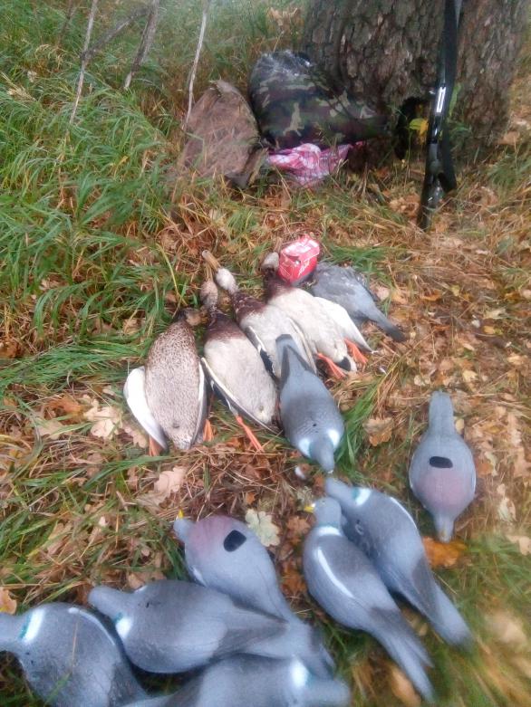 Будильник вещь занудная. Звонит и звонит. Ну что же с тобой поделать, будем просыпаться. С вечера уже уговорились, пока вяхирь не улетел, надо что то предпринять. Выхожу к машине: дождь! Но почему сегодня то, ладно вдруг на месте не будет. Кобеля с собой, пусть потрясёт жирком, чучалки, масксеть и в дорогу. Дождь не унимается, в голове дурное предчувствие, но... Знаю где рядом утки. Оне то от дождя не намокнут. Дружбан у подьезда, грузимся и в путь. Всю дорогу дождь, то тише то сильнее, нда херовый прогноз, всегда сбывается по полной. Пришли на место, мокрые уже, поставили чучалки, сами под куст. Вот и рассвет. Но дождь, занудный дождь.... Терпенье кончилось через час, все равно мокрый, пойду за утями. Товарищ в отказ, дождусь голубей. Пока дошел до ручья, вода в сапогах булькает. Ладно держитесь: кобель с ходу в ручей, тишина.Первый плес, пусто, прохожу двадцать шагов- дальний подъем, бить не бить? Да как не бить то, вскидка, выстрел в угон по прямой, готов. И тут понеслось, затаившиися было кряки сдались: как на заказ, по одному, с равным интервалом. Терпение, и ещё раз терпение, кругом тростник и осока, отпускаю на скошенный лужок. Есть. Следующий пошел, выстрел, готов, пауза и ещё один срывается и набирая высоту пытается уйти, но 7.5 NRG обрывает его полет. Стопэ, говорю сам себе, а кряки один за другим, из под ног. Сегодня хватит. Надо битых собрать. Пытаюсь на ходу вспомнить кто куда попадал. Начинаю прочесывать тростник, кобель находит первого, но молодой ищо, просто обозначает место возней, забираем, потом второй, третий, а четвертого пришлось попотеть искамши. Дождь не замолкает ни на минуту, я теперь сам стал частью этого болота, но надо найти. Минут через двадцать поисков натыкаюсь на селешка. Все амба. Товарищ по рации сообщает, что голубь появился и он открыл счёт. Это радует. Свищу кобеля и плетусь обратно, уже не обращая внимания на высокую траву, мокрые камыши. Потому что мне кажется, что я уже на 100 процентов состою из воды. А дождь все сильнее, недолго посовещавшись, складывается, собираем чучела и бегом к машине, начинает бить дрожь. Обратный путь, печка в салоне Потихоньку наваливается усталость, но мозг прокручивает картинки этого прошедшего сырого утра и в душе я счастлив, ведь у природы нет плохой погоды, но становится немного грустно, от того что все рано или поздно заканчивается...