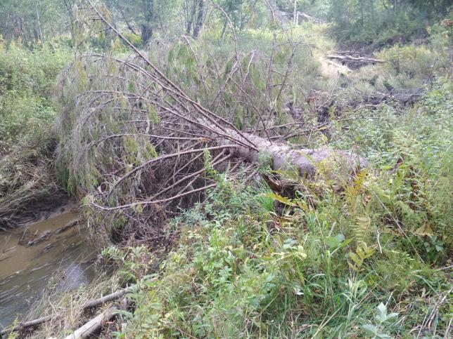 Так вот отвезли нас к истоку речки, скинули с моста и… А лодку-то и не спустить. Вода низкая. Полдня тащили шмурдяк по берегам извилистого ручья. Наконец-то стапель и пошли по течению. Но радость была недолга. Первый завал и обнос. Потом второй, третий… Расчёски, мели, бобровые плотины. Пропиливались, обносили, перетаскивали как матрас, сидя на бревне. Кто-то говорил мне, мол нафиг пила катана-бой не нужна. А без нее там просто с места не сдвинешься. Это не сплав – это пытка. Я много лет ходил на байдарках, но такого не ожидал. Какая тут охота? Вечером упасть бы и не двигаться. Хотя слышали вокруг себя лесные голоса. Рябчики, тетерева, глухари. Бобров немеряно, судя по завалам и следам. Лисы, енотовидные собаки, лоси и медведи. Встречались ласка и соболь. Палатку с собой не брали. Спали в лодке ноги к ногам. Благо она длинная, аирдек как матрас. Из тента, доложу я вам, столько можно всякого построить)). Но в основном, делали крышу, чтобы ночью к нам никто незаметно не подошел. Спали с ружом в обнимку, нож в головах. Плюс ставили растяжки из доработанных сигналов охотника с рыболовным шнуром. И вот ночью после двух дней такого рубилова мне пришло озарение – мы не пройдем маршрут за намеченные две недели. А мне лететь на работу. Я не хочу быть уволенным за прогул. Так прошло 2 дня «охоты» ))).