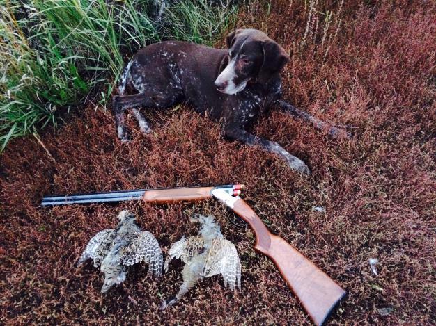 Охотимся понемногу на подлетающих перепелов.А они сидят в траве до последнего-взлетают перед самой мордой собаки,да и то неохотно.Опять одного пёс сам поймал в густой траве.