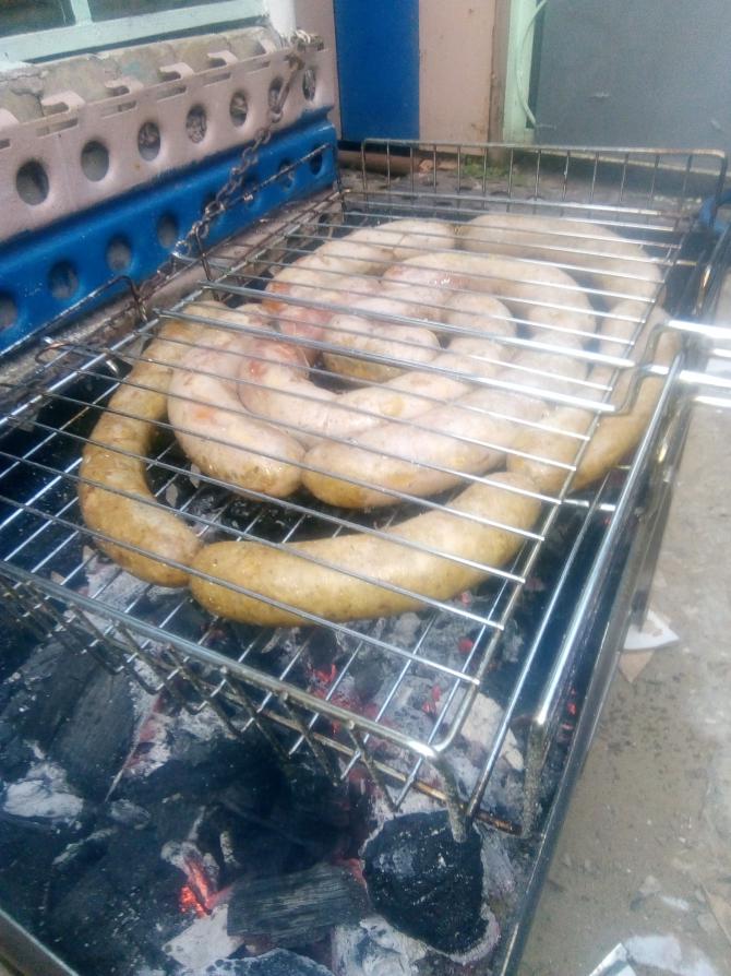 Лист с дерева в Южный ветер 5-7, порывы до 15... Но дела домашние оставили опять без охоты. По фиг. Морозилку надо освобождать. Колбаски домашние. Фарш, мясо по вкусу, крутим на мясорубки, чем больше жира, тем сочнее, лук, чеснок, камень преткновения, я добавляю. Специи разные как видит око видит, соль. Чрева свиная, насадка на мясорубку, набиваем, неплотно, протыкаем иглой. Мангал, угли, жар, колбаски на решетку и в путь. |