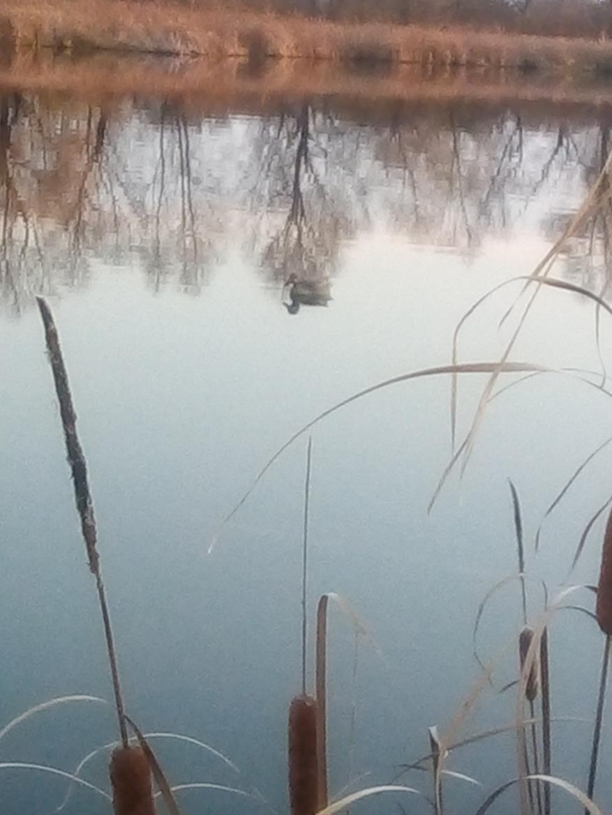 Давненько не выбирался на утиную. Да и коллеги особо не радовали информацией о наличии пернатых. Но нервы сдали, пораньше срулил, в лодку и на воду. Прогноз не соответствовал напрочь, обещанный ветерок где то заблудился. Но и ладно подышим свежим октябрьским воздухом. Тем временем забрался в озеринку, тишина. Пробрался в уголок, немного чучалок на чистую воду и сам сходу в камыши. Мелковато, лодка не лезет. Хрен с ней. Все равно по темну пойдут, подумалось мне.