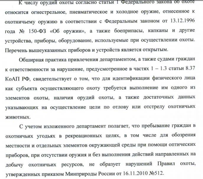 ![]() Артем Громов, думаю, имелся ввиду этот кусок и пристрелку, что разрешена Правилами РСФСР: "При этом следует иметь в виду, что правила охоты утверждены приказом Министерства природных ресурсов и экологии Российской Федерации от 16 ноября 2010 г. N 512 "Об утверждении правил охоты", а также постановлением Совета Министров РСФСР от 10 октября 1960 г. N 1548 "Об утверждении положения об охоте и охотничьем хозяйстве в РСФСР" и приказом Главного управления охотничьего хозяйства и заповедников при Совете Министров РСФСР от 4 января 1988 г. N 1 "Об утверждении типовых правил охоты" (применяемые в той части, в которой они не противоречат Федеральному закону "Об охоте и о сохранении охотничьих ресурсов и о внесении изменений в отдельные законодательные акты Российской Федерации")." |