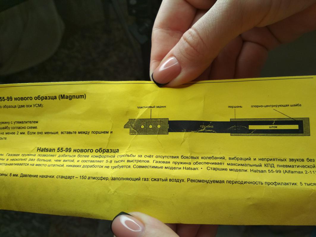 Только что прочел паспорт замененной пружины. Оказывается, стоит газовая Hatsan 55-99 магнум на 150 атм. Винтовка с родной пружиной на сайте этого магазина оценена в 7600, для справки.