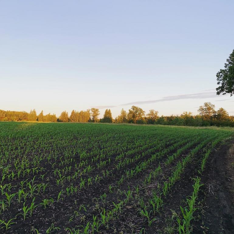 Ниву оставили в маленькой совсем кукурузе (как озимка весной практически), посажена на поле с дискованным подсолнухом.