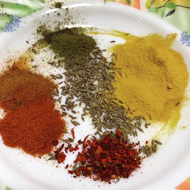 Добытый козлик оказался упитанным и даже жирным. Заднюю ногу на бастурму. Захотелось не обычного маринада. Основной приправой для бастурмы считается – Чаман, я его тоже использую, но в этот раз поступил так: мясо кусочками-брусками 3-4 см на 5-7 см укладываем на подушку из соли и засыпаем полностью каменной – крупной солью. Мясо даст сок, который лучше бы сливать и досыпать сухую соль. Солилась таким образом трое суток. После промываем холодной водой и отмачиваем 6 часов в холодной воде, периодически ее меняя (я пять раз менял). Обсушиваем с помощью бумажных полотенец. Занимаемся маринадом специй для обмазки бастурмы! Внимание специи: куркума, острая паприка, копченая паприка, прованские травы и зира (прям как в плов растираем ее), водички туда, перемешиваем и пусть тоже настоится минут 20.