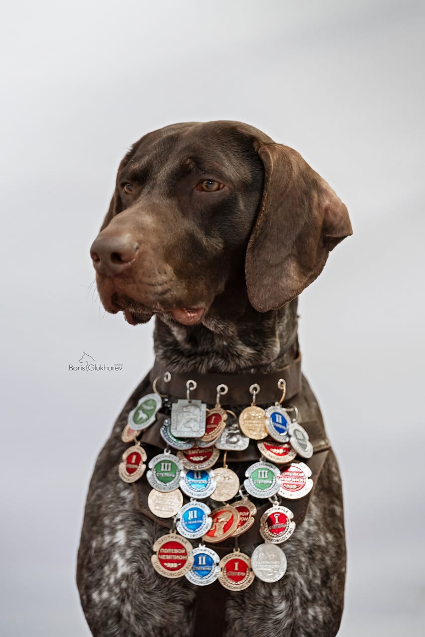 Титулы: Чемпион России, Чемпион РКФ по рабочим качествам, Дважды Полевой Чемпион по утке, Полевой Чемпион по кровяному следу, Полевой Чемпион по барсуку, Полевой Победитель по комплексу кабан/барсук.