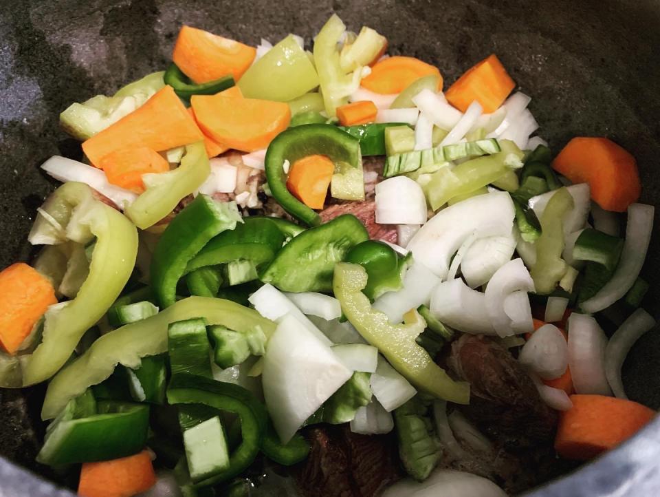 Кому лень смотреть - фото и описание тут... ШУРПА. Приехал ко мне друг и решили мы приготовить, что то необычное из дичи. Выбор пал на косулю – ножка свежедобытого козлика как раз замороженная лежала и ждала своей участи в морозильном ларе. На улице как раз начался дочь и казан мы отложили, а достали чугун. Готовить будем в духовке. Ингредиенты: - мясо косули – 2 – 3 кг., - картофель – 5 средних штук, - морковь – 2 средних штуки, - болгарский перец – три штуки, - помидор – 4-5 штук, - лук репчатый – 3 луковицы, - зелень (по вкусу) у меня петрушка. Мясо ставим варить в чугуне на плиту, в течении 40 минут как закипит вода, снимаем накипь. Соль и перец по вкусу. В бульон я бросаю целую луковицу, потом выбрасываю. Далее все овощи крупно режем и добавляем к мясу в бульон. Накрываем крышкой или фольгой и убираем в духовку на 1 час 20 минут при 180 градусах. Свежую зелень добавляем в готовое блюдо в тарелочку. Приятного аппетита! |