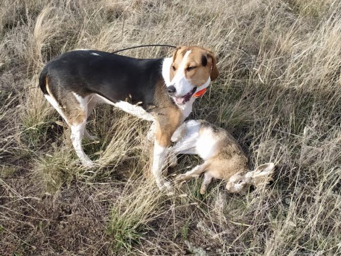 1. 06.11.2021 - первый ею увиденный заяц: "А что с ним делать-то?" Но быстро сообразила. Пока шли к машине - уже дралась со мной, пытаясь отнять. :-) 2. 19.12.2021 - гнала с голосом, выгнала на стрелка. 3. 02.01.2022 - на втором круге удачно ранил, перебив зайке заднюю лапу. Шла по крови, но молча. :-/ По пути сильно сбилась на полянке, где туалет у коз (всё обделано было). В итоге вернулась на след, нашла зайку под корягой и добрала.