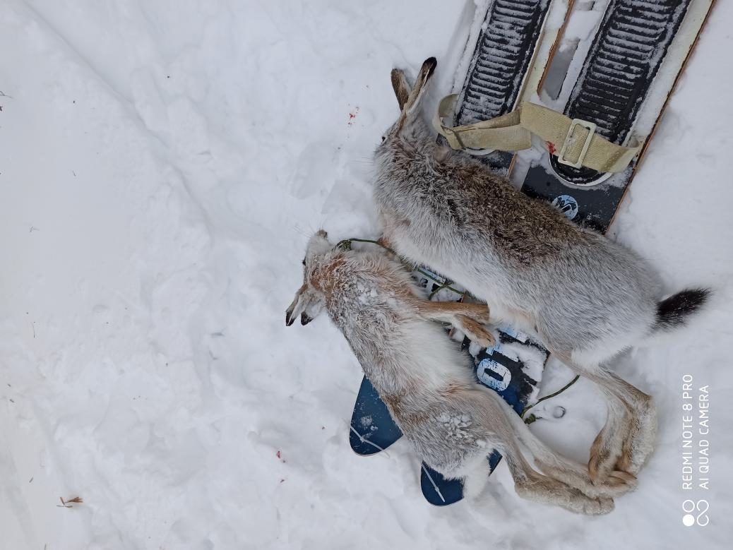 Один длинный загон и два номера. Всего видели пятерых ушастых. На товарища вышло два, одного сразу взял, второй убежал, но потом нашли в посадке. Третий вышел на меня. Закрылись отлично! Ждём нового сезона.