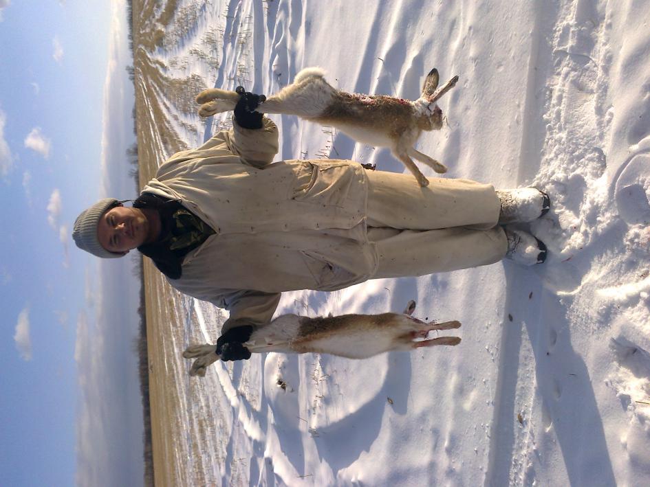 Неудивительно,что первых два промах.Зайчик твой в просвет лесполосы мелькнул на мах скорости и к тебе навстречу рванул.Двумя пристрелялся.третьим взял,классика.По работе тормознули до обеда,но я уже машину сложил и сразу в поле.Снежок свежий мне в помощь.