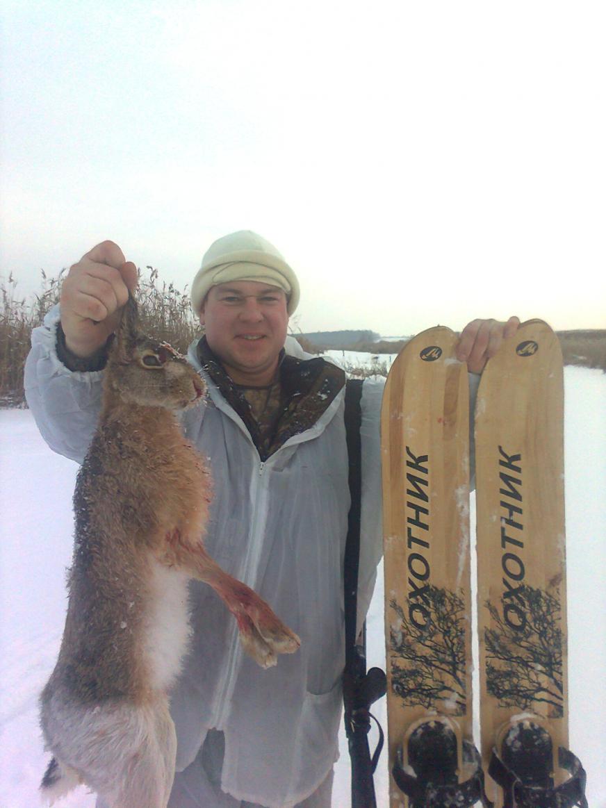 Вот обкатал новые лыжи. Заяц слабый на рану, слабый на рану, как потом выяснилось с простреленной спиной(стрелял с подъёма) мы с племяшом его тропили 2-3 км и добрали на речке в камышах выстрелом в глаз(как белку).
