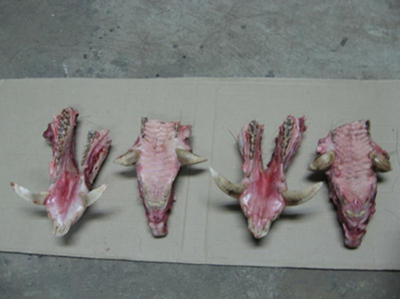 - Хочу порекомендовать начинающим охотникам "трофейщикам", как лучше !! Не буду говорить ((правильнее)) правильно у всех по разному, срубать клыки... -голову переворачиваем, извлекаем язык -вставляем палку между нижней и верхней челюстью, чтобы при рубке зубы не сломались друг о друга. -начинаем с нижних клыков, срубаем нижнюю челюсть, отделяем -подставляем что то, под верхнюю челюсть и рубим краем топора (верхняя часть - хрящ) -срезаем лишнюю мякоть. |