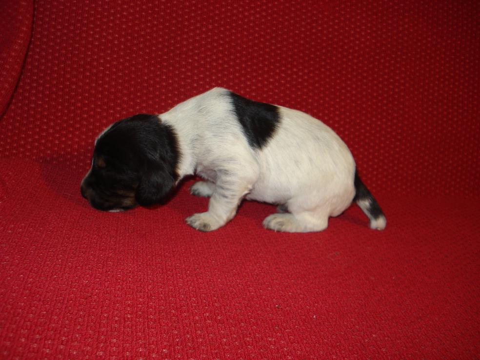 Щенок Черно-пегий с подпалом (третий) будет очень активный.