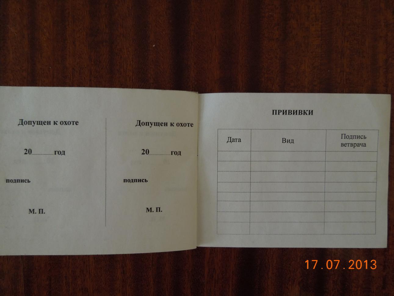 у нас по другому сделали-приходишь в охотобщество с документами на собаку (справка о происхождении) и с ветпаспортом, кинолог выписывает "паспорт", ставит штамп и дату "допущен к охоте".
