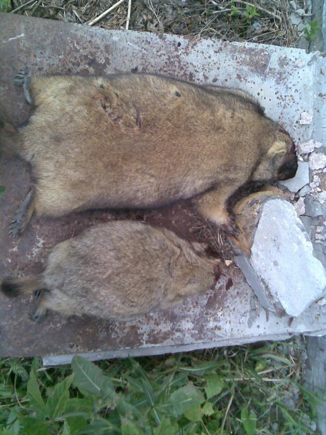 Теперь не говорите мне, что РСР винтовка в 4,5 легко берет сурка.НЕТ!!!! дистанция 21м-33м-51м ХРЕН!!! (два попадания в головы, лично видел в бинокль, третий по пузу((((.) Сурки кричали от боли... и уходили... подбегая к норе в норе слышались не приятные звуки сурка... Охота была прекращена... взяли старый добрый дробовик и дело пошло))) Топлю жир... Да, зарядки батареи видео хватило только на РСР "охоту". Не-знаю даже.. такое не показывают... Но на память сохраню... Сезон только в разгаре Всем удачи на буйраках Не забавы ради!! А эксперимента, я про РСР.. Хреново конечно. Игореха с РСР в 5,5 брал....