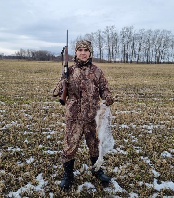 Белым покрывалом было всё укрыто. Настроение поднялось. Но вскоре упало. Следов то нет, кроме следов неправильных и больших "зайсов". Их мы видели 8 штук. Вдоль грунтовой дороге замечаем еле заметный след косого, которого разбудили, но ушел он незаметно. И тут начались погони. Первый всё-таки уходит. Второй тоже. А пока шли с выжлецом по следу, поднялся третий. Мазанул☹️. Вернулись за вторым. Нашли его скидку, начали тропить. Подняли. Минут через 30 гона, заяц вернулся на свой след, где и был добыт охотником. Трудовой трофей, тем он и ценнее.