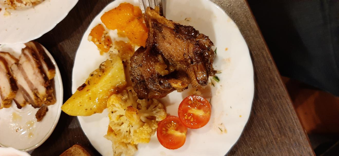 Окорок кабана! Маринад прост - нашпиговал чесноком, добавил мороженный розмарин и чабрец, перец всякий, соль и с верху масло оливковое, натер... пленкой пищевой закрыл и в холодное место на сутки... Запекал при 200 грудусах - 1 час с накрытой фольгой, 2-й час без. периодически поливал маслом по чайной ложке... Получилось очень вкусно, рекомендую!