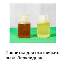 "Эпоксидная пропитка для лыж это модифицированный эпоксидный компаунд сохраняющий свою пластичность при минусовых температурах. Применяется для пропитывания скользящей поверхности деревянных лыж, так как образует слой который противодействует попаданию влаги в древесину, тем самым уменьшается износ и придаётся повышенная прочность лыж." |