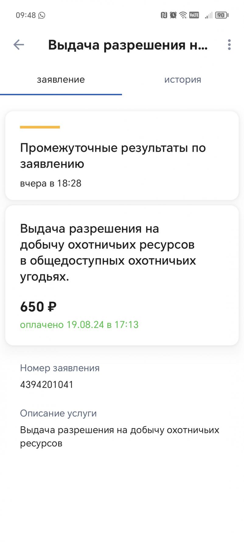 Наконец-то пришло уведомление на почту о том, что услуга исполнена. Можно ехать забирать разрешение на зайку.