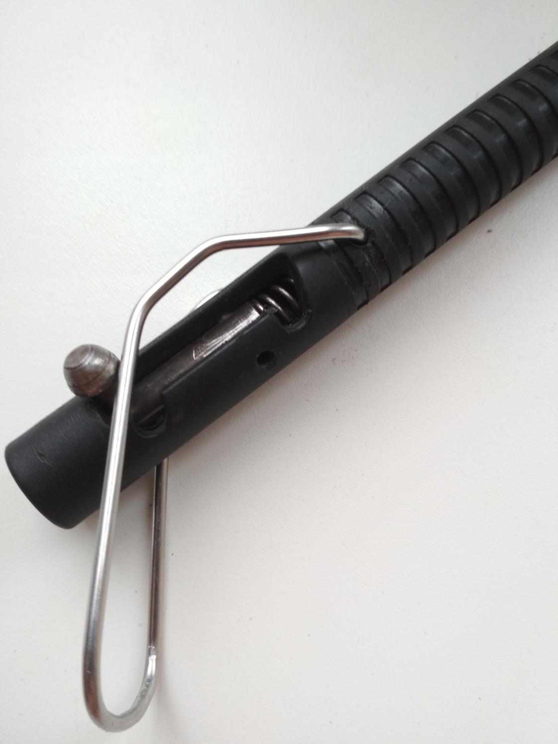 Если за край скобы привязать шнур и потянуть его, то видимо скоба должна сдвинуть ручку ударника из паза и произойдёт срабатывание устройства.