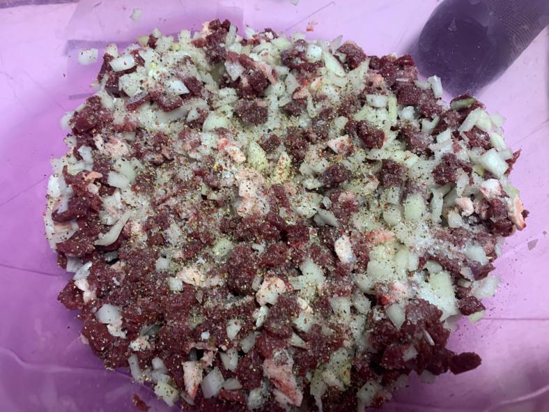 --------ВИДЕО РЕЦЕПТ. Добытый козлик оказался упитанным и даже жирным. Заднюю ногу на бастурму. Захотелось не обычного маринада. Основной приправой для бастурмы считается – Чаман, я его тоже использую, но в этот раз поступил так: мясо кусочками-брусками 3-4 см на 5-7 см укладываем на подушку из соли и засыпаем полностью каменной – крупной солью. Мясо даст сок, который лучше бы сливать и досыпать сухую соль. Солилась таким образом трое суток. После промываем холодной водой и отмачиваем 3 часа в холодной воде, периодически ее меняя (я пять раз менял). Обсушиваем с помощью бумажных полотенец. Занимаемся маринадом специй для обмазки бастурмы! Внимание специи: чаман (пожитник), копченая паприка, кориандр, водички туда, перемешиваем и пусть тоже настоится минут 20. А далее все элементарно просто, обмазываем мясо и развешиваем его на сушилку для белья… Трое суток – все готово, кто по суше любит – четыре нужно подержать. Вкус остренький, соленый, мясо нежное – с пивом или красным сухим вином просто восхитительная закуска. Дети вообще просто так кушают, как чипсы. Цвет – правильно полученную бастурму характеризует ее цвет при срезе – красно-рубиновый. Приятного аппетита, друзья! |