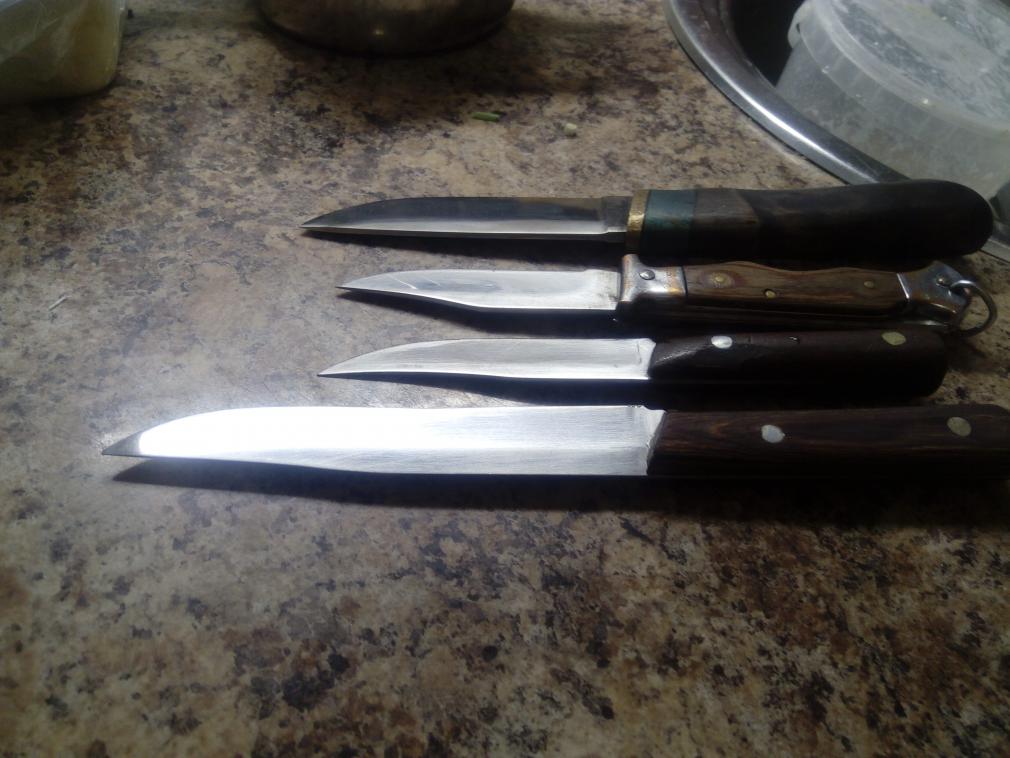 наверно фото не отражает в полной мере сказанного выше. у всех профиль в сечении как было показано выше, соответвует пункту №3 из картинки. ну и собственно, поверьте на слово все экземпляры, за исключением верхнего, сделаны 20 с лишним лет назад. и служат до сих пор верой и правдой. вторым сверху, который раскладной, ошкурено достаточное количество разной живности, не смотря на то, что изначально это был китайский ножичек из хз, непонятно чего)) заменена ось и лезвие.. а, ну еще сточены упоры... это конечно не полная коллекция, еще один в деревне, еще один сломался. у всех сталь 95Х18, это было изначально принципиальным критерием