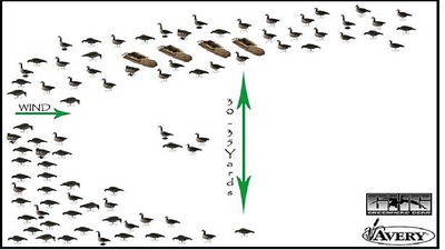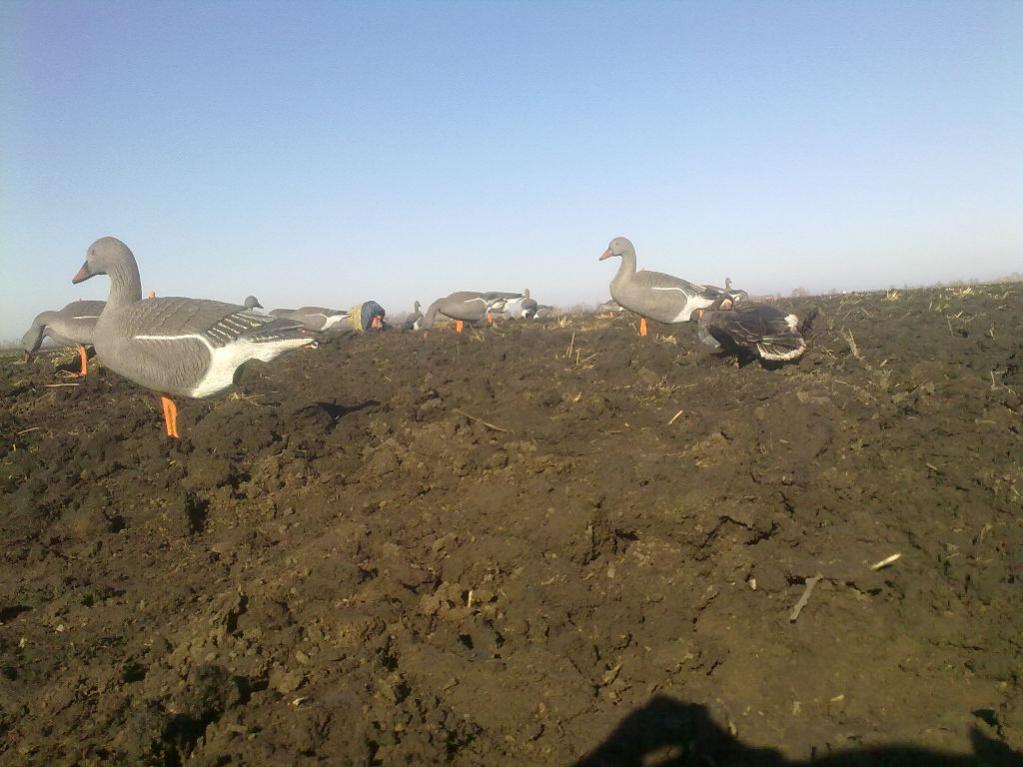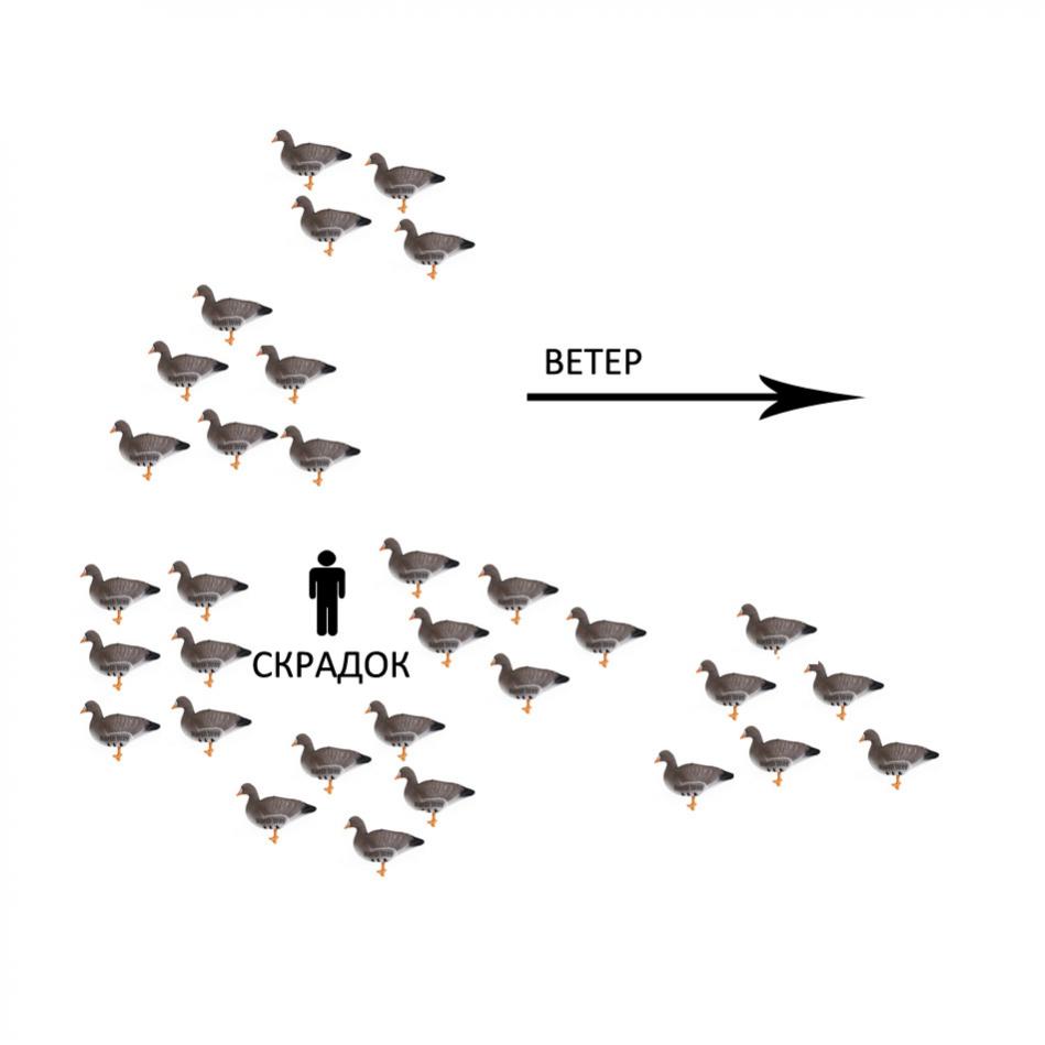 Я подковой расставляю. Примерно как на фото. Гусю есть место присады. Когда расставлял стаей - гусь хуже идет на посадку.