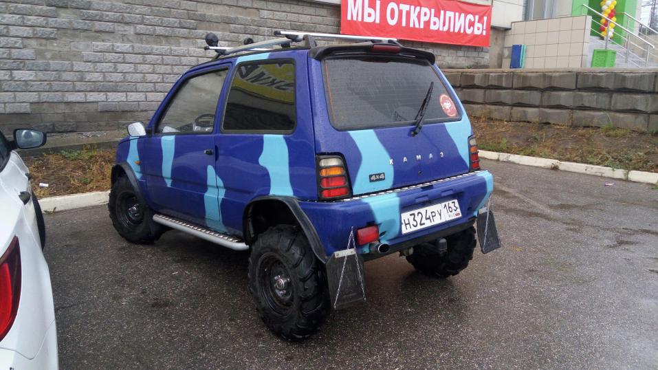 Да у меня у знакомого - клиента бывшего был подобный пепелац, только белый - весь в кенгурятниках и прочем - жуткая жуть - да еще, вроде наклейка была "Не обижай маленького", и этот дикий прапор (как он сам себя именовал), на этом гонял дуром, а внутри были следы недоделанной аудиосистемы - провода везде торчали (это я так, вспомнил - на дороге встретились - присел к нему поговорить)! Я после этого закомплексовал прямо таки и на вопрос (когда куда-то подъезжаешь спрашивают - какая машина?) стал отвечать - да как ока по форме, цвет черный, чуть больше, подъеду поймете. )))))