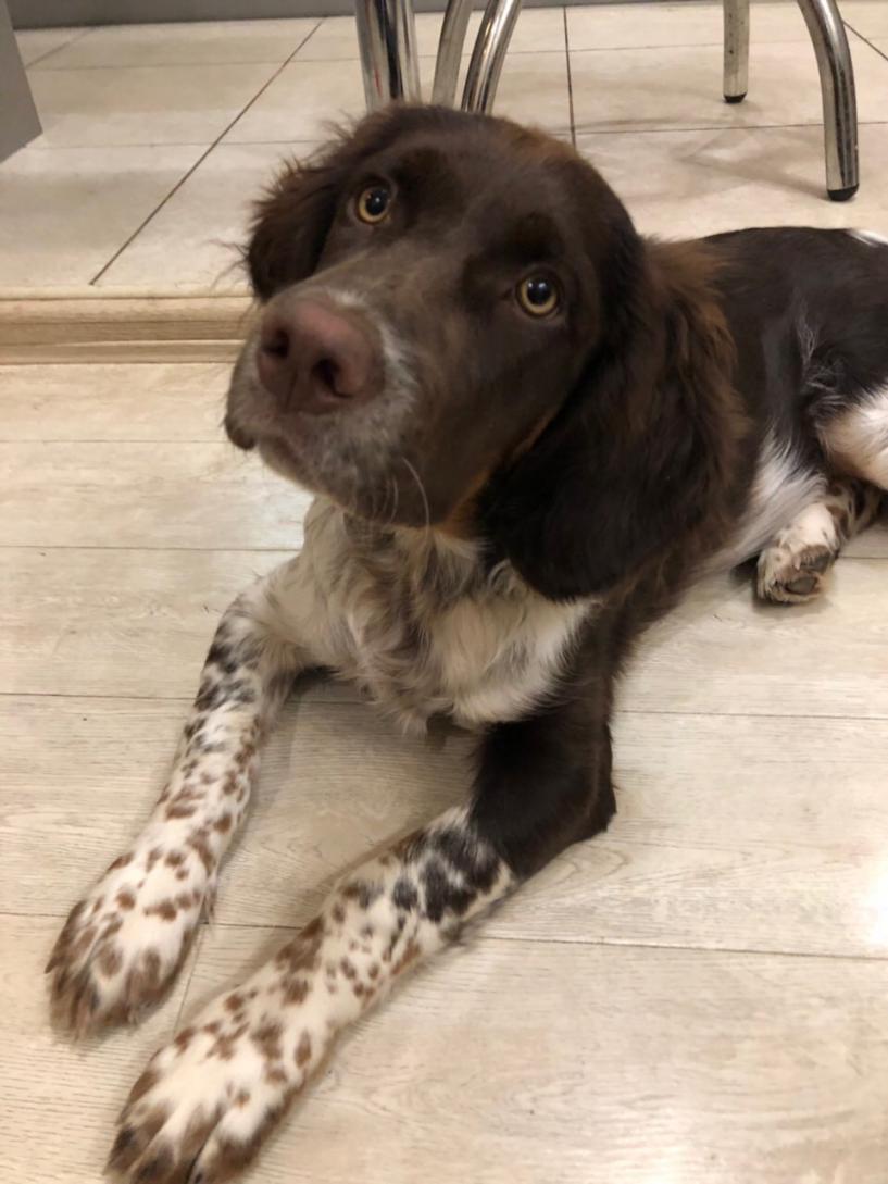 Рейси все еще ждет своего хозяина. А пока осваивает служебные команды. Знает "ко мне", "сидеть", "лежать", "ищи". В процессе обучения команда "подай".