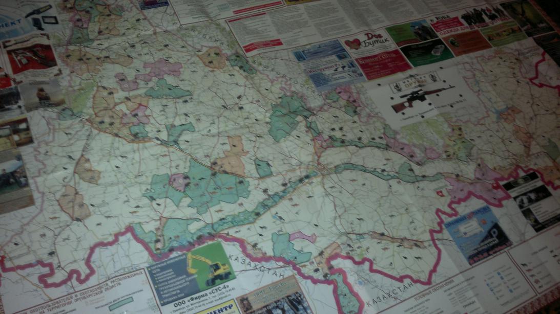 -В оренбурге купил в охот,магазе. на одной стороне для рыбака на другой для охотника. на ней есть все. в плоть до координат высших начальников,не говоря о том какая дич где водится