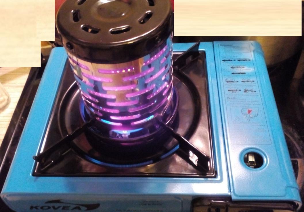 Испытания проводил на кухне, в полевых условиях пока не знаю, когда выдастся возможность их провести. Внутренний отсек штуковины моментально нагрелся докрасна. Газ можно делать на минимум - все равно греет хорошо. КПД выше, чем просто греть без насадки. Пожароопасность несомненно присутствует, но опять же намного ниже, нежели просто открытое пламя.