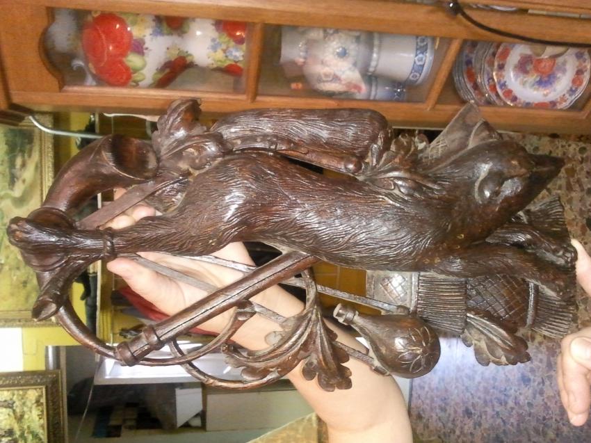 Был я у коллекционера.Предложил купить резьбу по дереву середина 19 века.Украшала трофейную комнату какого-то барина.Работа очень тонкая,каждое пёрышко до мелких деталей вырезано.