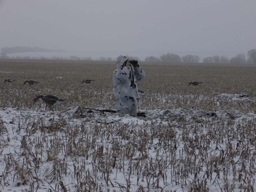 И мы открылись!Пять копеек от нас в копилку форума, Алексей погодные условия описал выше, времена года прошли за сутки. Гуся почти нет, поговаривают, что отсиживается в Саратовской области. Один налет из 4-х гусей взято три, четвертый удрал по пашне.