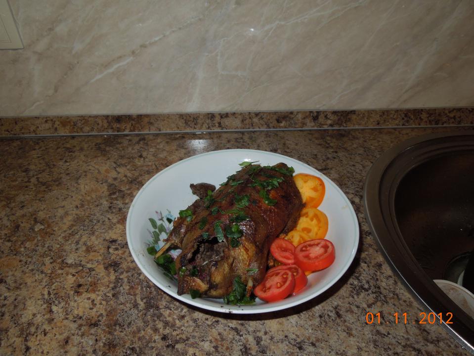Берём утку и натираем её солью, специями, чесноком. В брюшную полость вкладываем две половинки яблока(в чирка одну, больше не лезет ), и в рукав. Запекаем в духовке минут 30-40, 180-200град. Потом рукав разрезаем и ещё минут 10, держим там для румяной корочки. : Good2: |