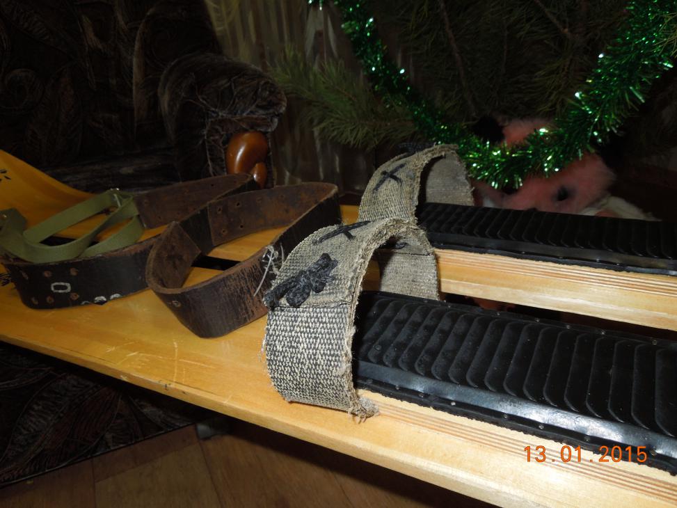 долгое время пользовался тестевскими лыжами, еще советского производства. не особо широкие, но легкие. тайга, вроде, назывались. а два года назад обзавелся собственными. купил крепления брезентовые, резинки. поставил и отправился испытывать. на первом же шаге пятка съехала, повернув ногу, но не сдвинув лыжу ни на миллиметр в сторону. походил так пару кругов, плюнул и поехал домой. почесав репу, вспомнил, что не зря наверно на тестевских лыжах ремни были из транспортерной ленты и валенок туда туго влазил... нашел 5-ти миллиметровую кожу, вырезал чуть больше по ширине ремни и сделал туго по сапогу. и о, чудо! лыжи рулить стали туда, куда ногой поворачиваешь)) но счастье было недолгим-хватило ровно на полсезона. видимо кожа старая, пересохшая была. в один прекрасный день на охоте, далеко от дома крепление лопнуло. ну, "аптечка" всегда с собой-сшил леской и до дома дотопал. долго искал подходящий материал и в итоге, вспоминая тестя, поставил ремни из транспортерной ленты. и вот что получилось-ботинок практически жестко фиксируется безо всяких дополнительных ремней и, как это ни пародоксально при тугой посадке, в случае необходимости- лыжи скидываются на раз. осталось просмолить летом под солнышком, чтоб щас лампой не вонять. и думаю на следующий сезон лыжи будут подготовлены.