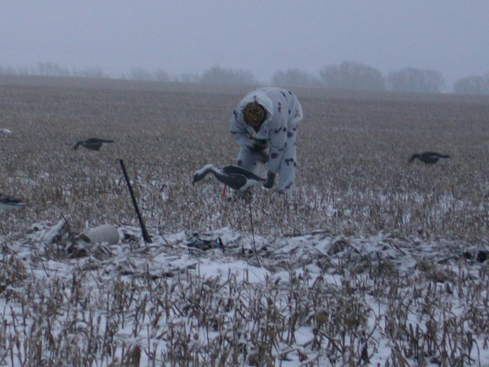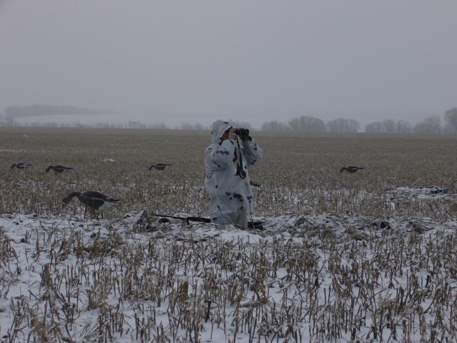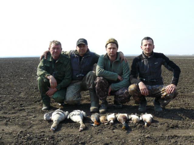 Всем привет. Наконец то руки добрались и до компа. Всех, к кому фортуна была благосклонна, С ПОЛЕМ!!!!! Мы закрывались аж три дня. Приехав в 3 утра в пятницу к облюбованной снежнице в поле, делаем скрадок на границе озимых и прощлогоднего подсолнуха. рассаживаем профиля, по кружечке чая, авто отогнали подальше, чтоб потом ни в чем себя не упрекать. Время 4-30, а у нас все готово. Утки, кулики орут, гусей слышим что в поле сидят..... красотища короче. Душа радуется. Место-великолепное, три раза на неделе в 2 вставал и мотался с товарищем на разведку за 170 км. Сидим, балдеем. Забрезжило, утвы мотается несметное количество - игнорируем, не за ними приехали. Слышим: ГАК-ГАК со стороны восхода. Все, началось, буквально врастаем в землю и им тоже в два горла : ГАК-ГАК. Налетает чуть стороной тройка, облет, ушли..... через три минуты летит стайка, голов 30. По земле стелятся. Прямиком на нас. Мы им контрольный: ГАК-ГАК. Все, почти наши, уже подлетают к снежнице и им под перо, кто то с другой стороны снежницы БАХ БАХ, двое выпали. Разумеется остальные в сторону, вверх и от нас уже и далеко и высоко................ Назвать все это разочарованием, не сказать вообще ничего. Снежница занята, заря накрыта женским половым органом, собираться долго... короче как то не срост с самого начала. Делать нечего, собираемся, ноги в руки и оттуда. Собираемся с мыслями и решаем остаться на этом же поле, только с другой стороны, благо нашли еще одну снежницу. не такую большую как предыдущая, но вариантов больше нет. Зная, что гуси прилетают на поле в основном на ночлег, решаем окапываться днем. Лопаты в руки и погнали. Через часа 3 все ямы готовы, профиля выставлены, относим лишнее, отгоняем машины в посадку. Гуси иногда радуют своим присутствием в небе. Сельчане начали уже поле наше бороновать, но с трактористом Леонидом заключена договоренность объезжать нас подальше, и была подкреплена литрушечкой белой. Короче надеемся. После обеда подъхало наше подкрепление. Покушали, по 100 бевых и в бой. Мы по "норам", подкрепление на воду в 1,5 км от нас. Сидим ждем. С гусем не густо. Получилось подсадить стайку, но, как назло, сели напротив нас с другой стороны лужи. Метров 100. Сидим любуемся. Те попили, походили, наших замерших спалили и свалили. Больше налетов не было, проходили высоко, на нас не отвлекаясь. Стемнело, выходим к машинам. Подкрепление оказалось более удачливо и в нашей копилке появился белолобик, налетевший к профилям и красавчик зеленоголовый. Уставшие кушаем, по чуть чуть "С полем", уставшие спать. Вся надежда на утрянку. Затемно мы уже в "норах". Утва мотается, мы своих серых ждем. Налетает одиночка. Ну, думаем, разведчик. Над нами кружок и дальше поле осматривать. Наблюдаю за ним в бинокль. Смотрю летит над нашей "первой" снежницей. Бах,бах, бах....... улетел он. Больше не возвращался. Скукотища, гусей особо не видать, решаем поразмяться по уточкам, пара свиязок, чирок. Ну, хоть что то. Время к 10. Надо же блин, приспичило меня, по серьезному. Как то в чистом поле не с руки)))) пошел до посадки, почти км))) Отстрелялся, так сказать, опа-звонок. Товарищ звонит из ямы: "Леха, тут гуси снова сели напротив нас, с другой стороны". Короче делаем загон ))))) я крадусь к гусям в надежде что они меня спалят и налетят от меня на моих коллег )))) Короче, тигра представляете, который стелится по земле, вот он бы мне позавидовал. Короче, поднима