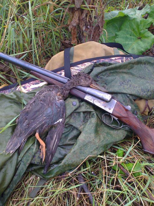 Поехали в пятницу думали с утра откроемся тут дождь зарядил и все сильней, решили уехать приехали в субботу часиков в семь вечера. Одеваю костюм и вперед на озеро положил одну по светлому еще пару уже по темному вообщем утя была может еще седня удастся сгонять.