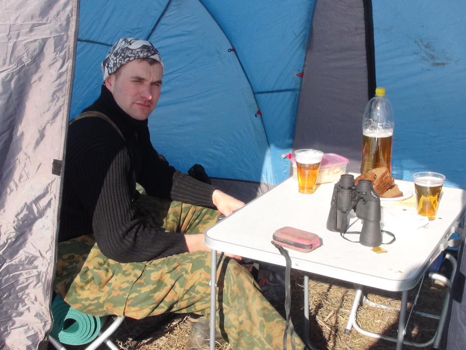 Ну вот и наша команда явилась с полей... Выезд был 10.04 вечером. Поле знал уже с осени, приехали и пошли сразу на то поле, где собрались охотить. От увиденного резало глаза, были в шоке. и дае закралась мысль не мало ли я зарядил патронов (300шт)))) Вот что творилось на наше поле в четверг В пятницу к обеду начал подтягиваться народ. Вообщем по всем писанным правилам маскировки "охотники" начали это делать с 12 часов дня пятницы.....В итоге все это что представлено на видео, дружно поднялось и улетело в Ннном направлении..., надежда была что прилетят, но она и осталась последней...((( Вообщем поле на котором охотились мы, ещщё было человек 30-35... по счастливой случайности или нет, мы оказались в эпицентре этого поля 5км х 5км... В субботу вышли наверное раньше всех, в итоге это и сыграло роль в открытии охоты и выбитом из стайки гусика. Самая первая стайка прошла ещё было темновато.... Затем по полю начал ходить народ, видимо после ночи искать свои скрадки и прочий набор принадлежностей для охоты. Так прошла утрянка. Мы довольны. За вечерку к нашему скрадку упали ещё пару гусиков... Воскресенье утро добыт 1 гусь... а лет прекращался с каждым часом... Надеемся на понедельник утро, так как "охотники" потихоньку свалилвали...и + приехал друг с 2мя живыми подсадными гусями... понедельник утро 1 добыт. Пришлось побегать... вечер пусто. Вторник утро был прекрасный налет стайки в 15-18 голов, при подлете на первом круге решено подпустить ближе и дать сделать 2ой круг... на втором кгруге отстрелялись, белолобик упал сразу, а за гуменничком пришлось опять побегать. Последующие дни охоты, ни одна птичка не пострадала!) Открытие состоялось! Все довольны, итог весны 7гусей. Ждем 2015 год))) Всех с полем!
