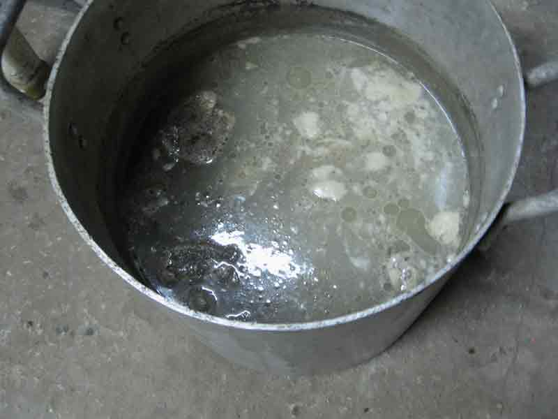 - Снимаем емкость с огня и ждем пока остынет, работаем с теплым раствором.