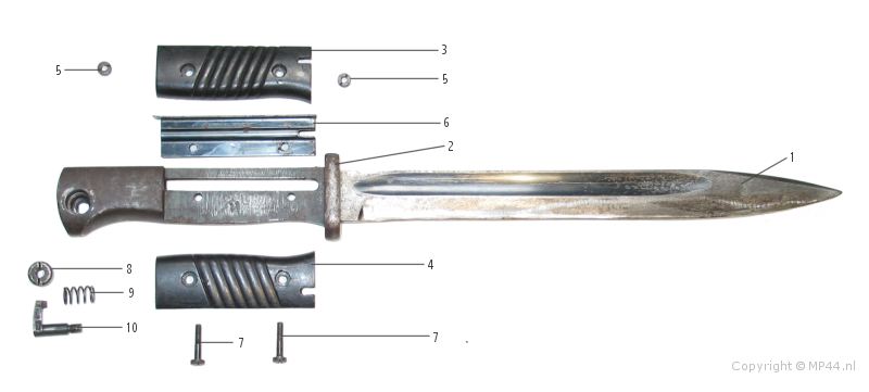 Отполировать - это не проблема. Проблема в комплектации и подгонке частей. Самый хороший вариант купить недостающие части на сайте WW2: http://forum.ww2.ru/index.php?showforum=231 и потом уже отдать на реставрацию - в чём я могу оказать посильную помощь. Гарда крепиться к штык-ножу штифтами.