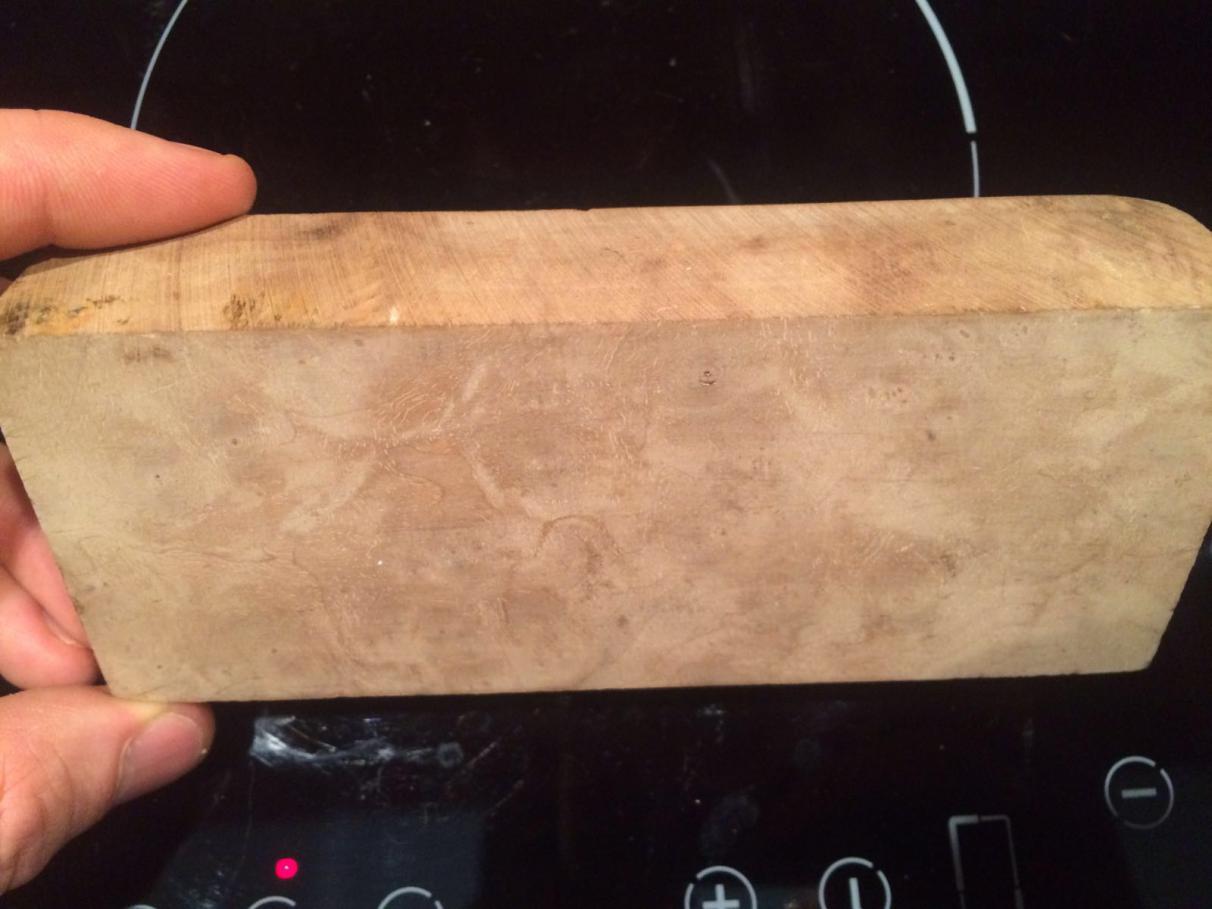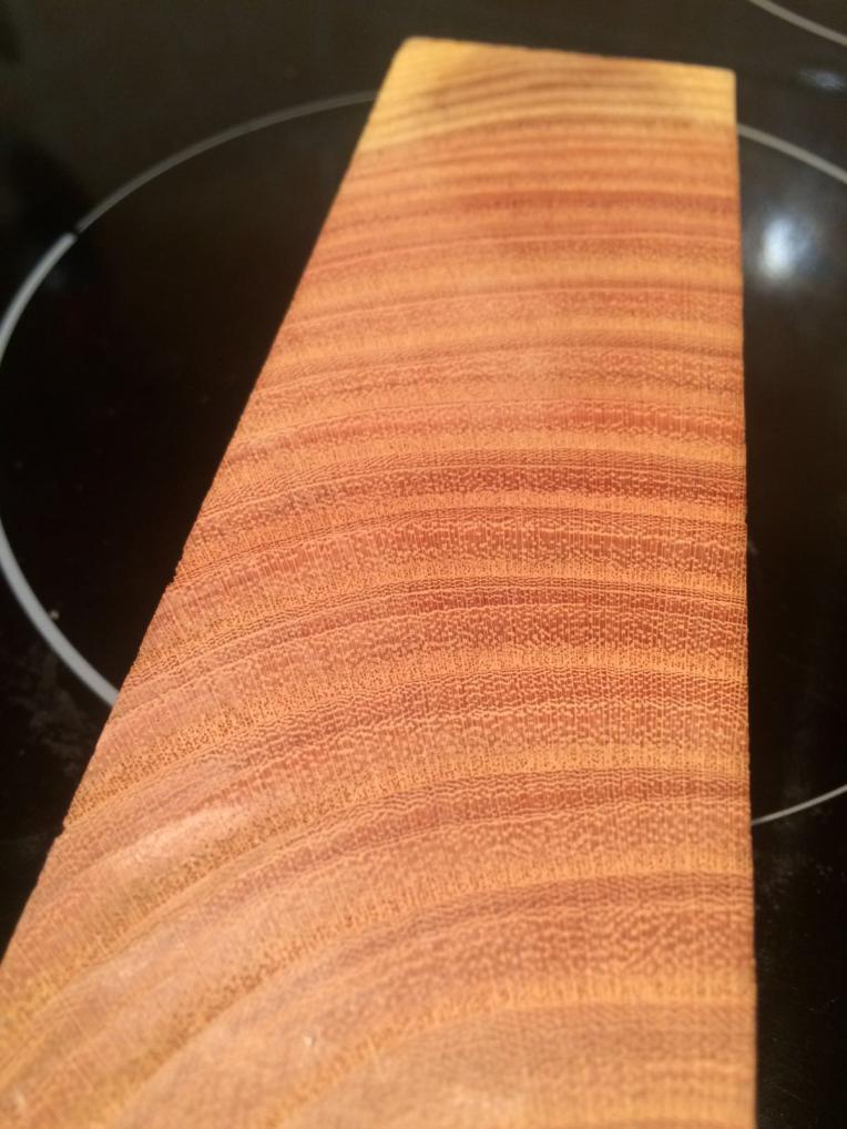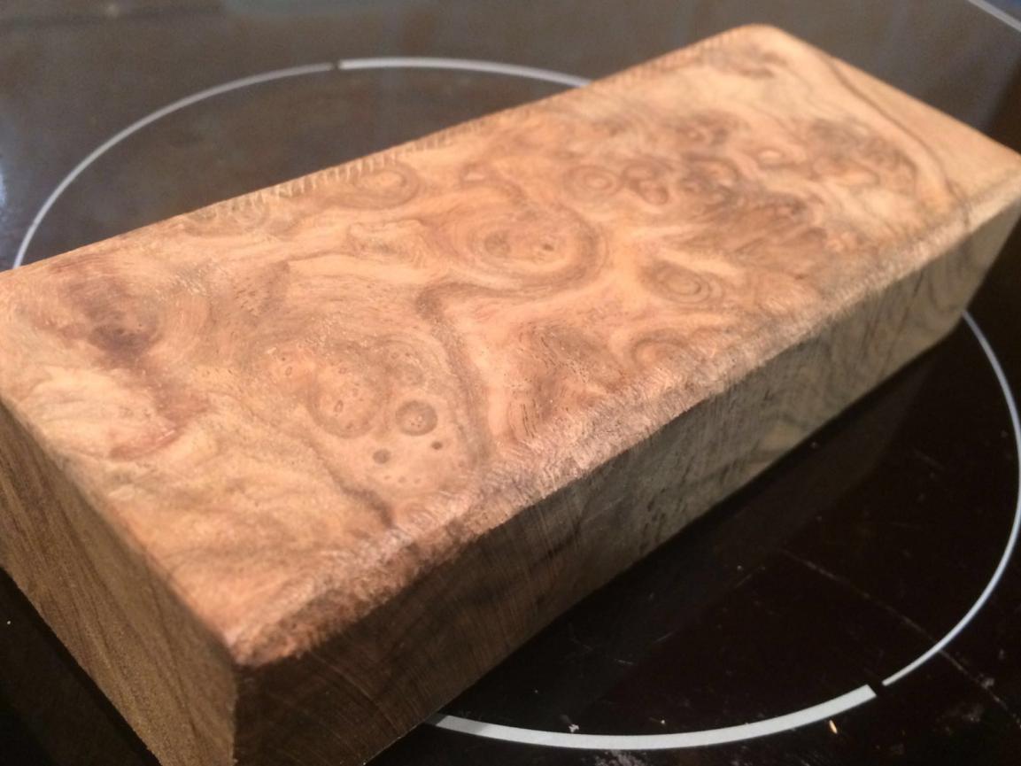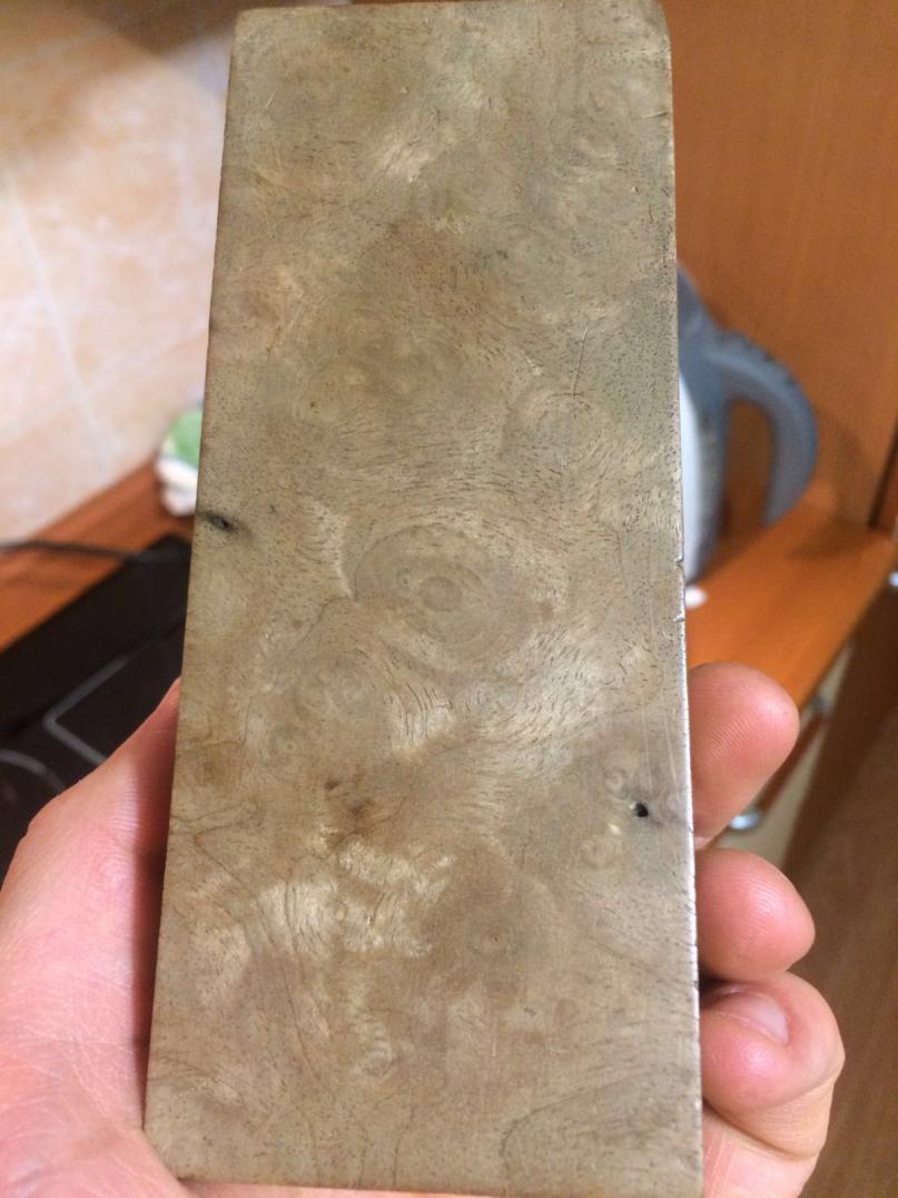 Корнекап ореха вроде. Тяжёлый в обработке на красивый зараза) один из ножей собирал с такого куска. После полировки глубокий