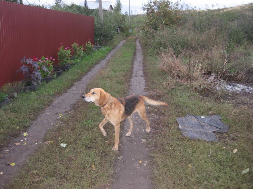 У друга на дачу пришёл выжлец- гончак. Исхудал бродяга. Возраст на вскидку года 3.