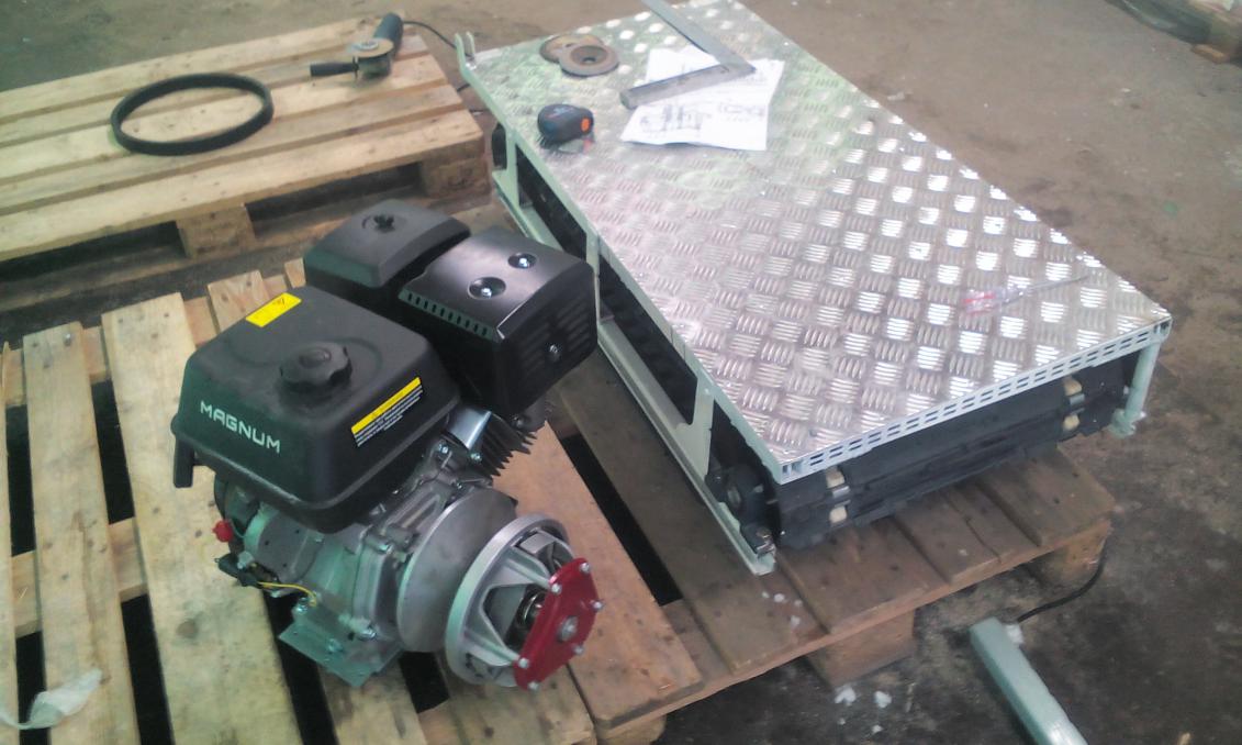 Цепь пока не ставили. Посмотрели как работает мотор в связке с вариатором. Потом немного поправили их взаимное положение и хорошенько прикрутили к подрамнику.