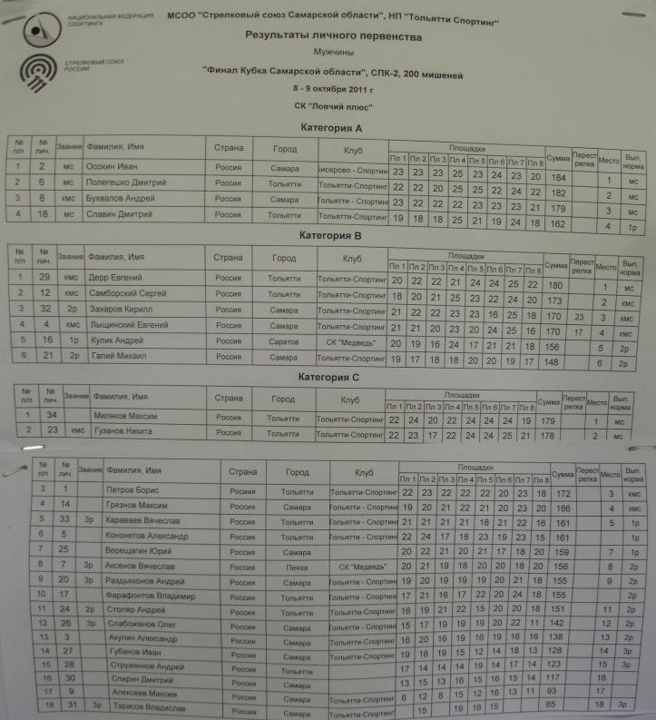 по турниру который будет проходить 15 октября: все как обычно 11:00 стреляем две серии на трех площадках 1-я площадка - 5 дуплетов 2-я площадка - 5 дуплетов 3-я площадка - 5 мишений на АЙ-БИ-ТИ По результатам двух серий определяются финалисты (3 человека в группе "спортсмены" и 3 человека в группе "охотники") Финалисты стреляют компакт-спортинг 25 мишений (мишени на финале - "Флэш"), по результатам из 75 - распределяются места в каждой из групп. Финансовая сторона: участие - 800 р финалисты дополнительно 300 р |