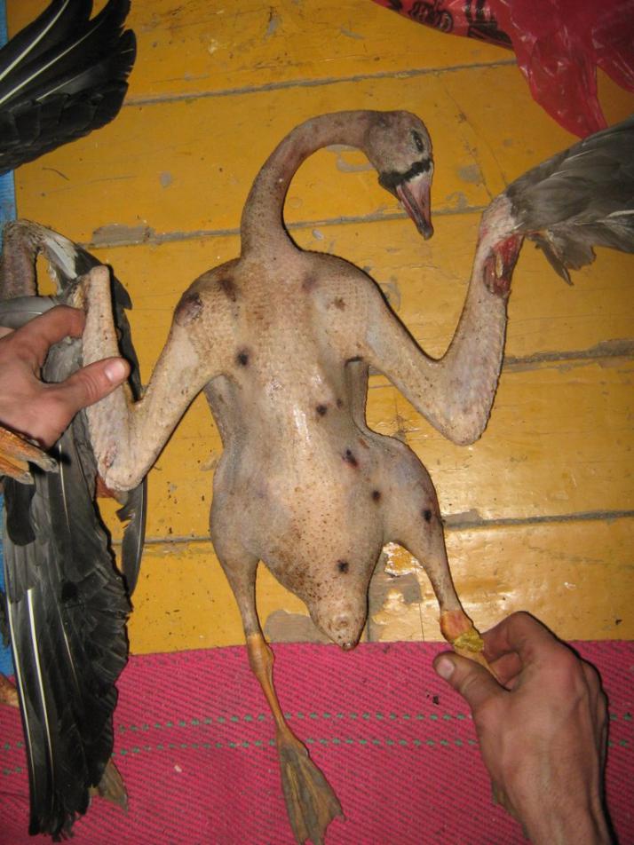 тоже тройкой стреляю, т.к. бью наверняка,падают тряпкой. За стратосферными если не гнаться тройки за глаза хватает. Байки про бронированных гусей слышал не однократно и от опытных гусятников в том числе. На фото гусь битый тройкой.